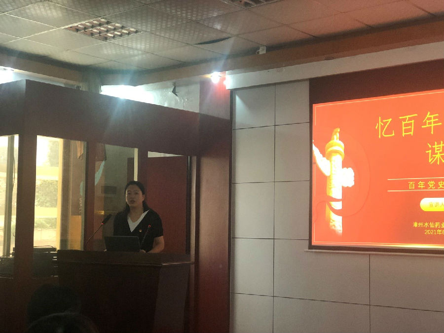 为庆祝中国共产党成立100周年,6月24日,漳州市伟德国际victor·1946源自药业结合上级通知,、党总支书记林燕榕同志做了题为《忆百年党史、谋崭新征程》的党史教育宣讲。全面介绍中国共产党的革命历史,林书记严肃又不失幽默的讲课,让所有的党员同志听的津津有味。