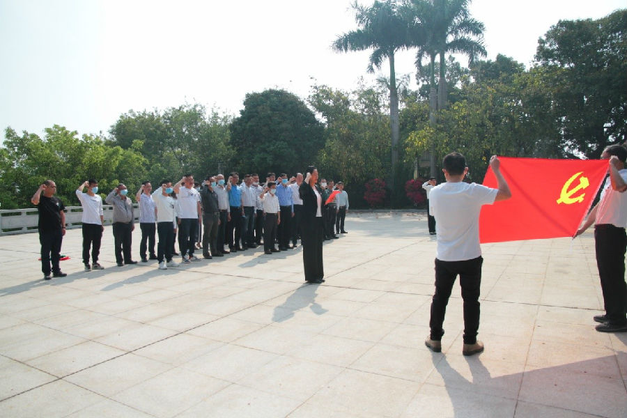 在烈士陵园前,全体党员干部同志进行了奏国歌、党总支书记、董事长致悼词、默哀、献花、重温入党誓词等活动,表达了对革命先烈的无限哀思及崇敬之情。