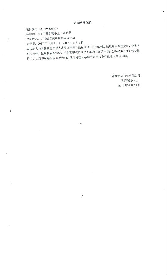 风油精纸箱评标结果公示